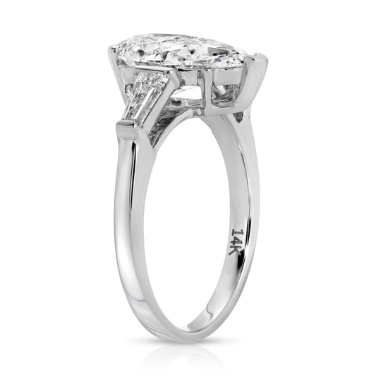 14KT Gold Pear Cut Lab Diamond 2.02cts F VS1 set with 2 0.34ct Tapered Baguettes Lab Diamonds Engagement Ring