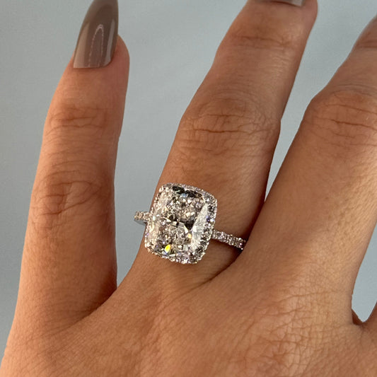 14KT Gold 4cts Halo Cushion Lab Diamond Center Stone Engagement Ring