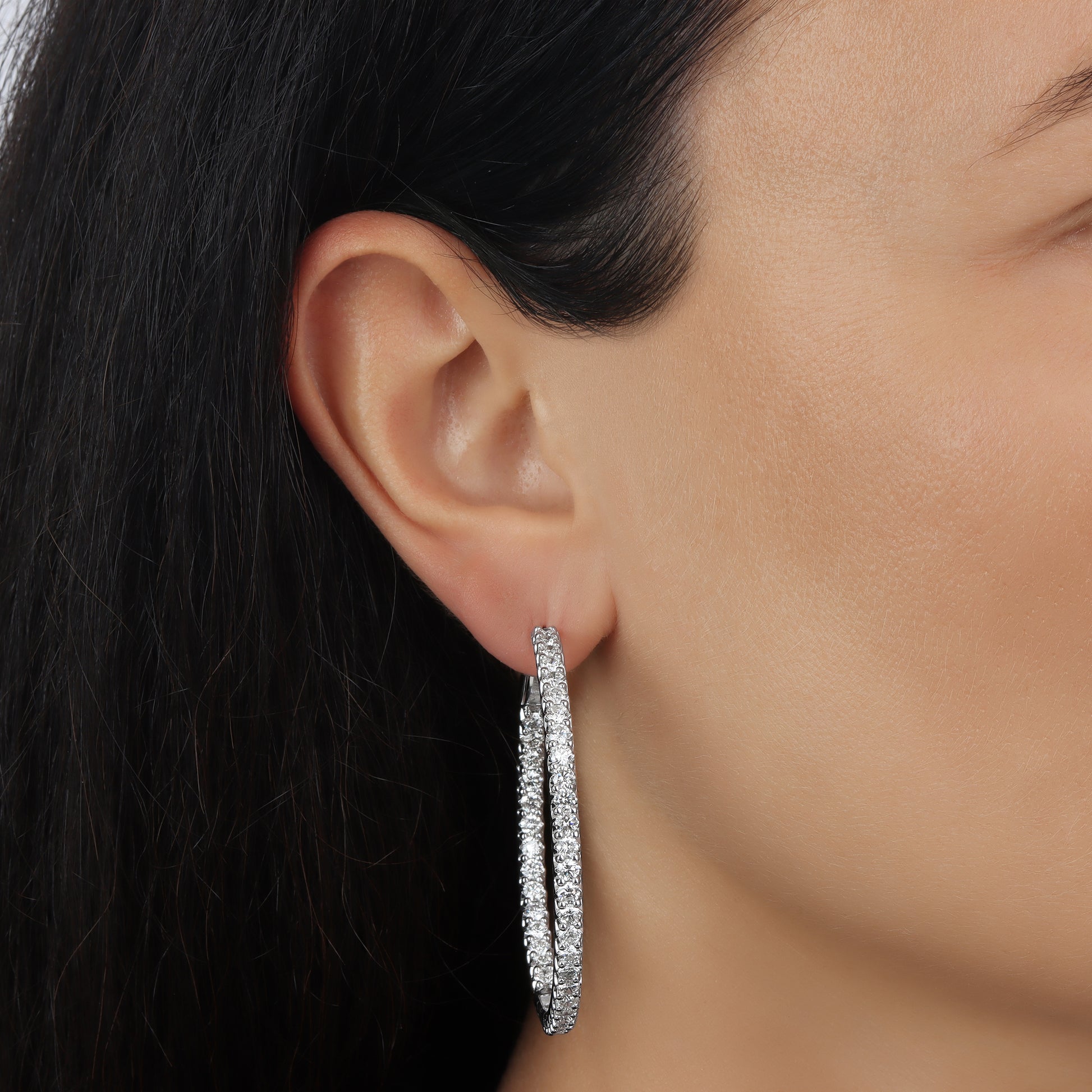 Indulge in luxury with our 14KT White Gold 7.29ct Hoop Earrings. These exquisite earrings feature sparkling 7.29ct F-G VS2-SI1 round diamonds that are set in 14KT white gold, providing a sophisticated and exclusive look. Available in white, yellow, and rose gold, these earrings are a must-have for any fashion-forward individual. Elevate your style with our premium hoop earrings.