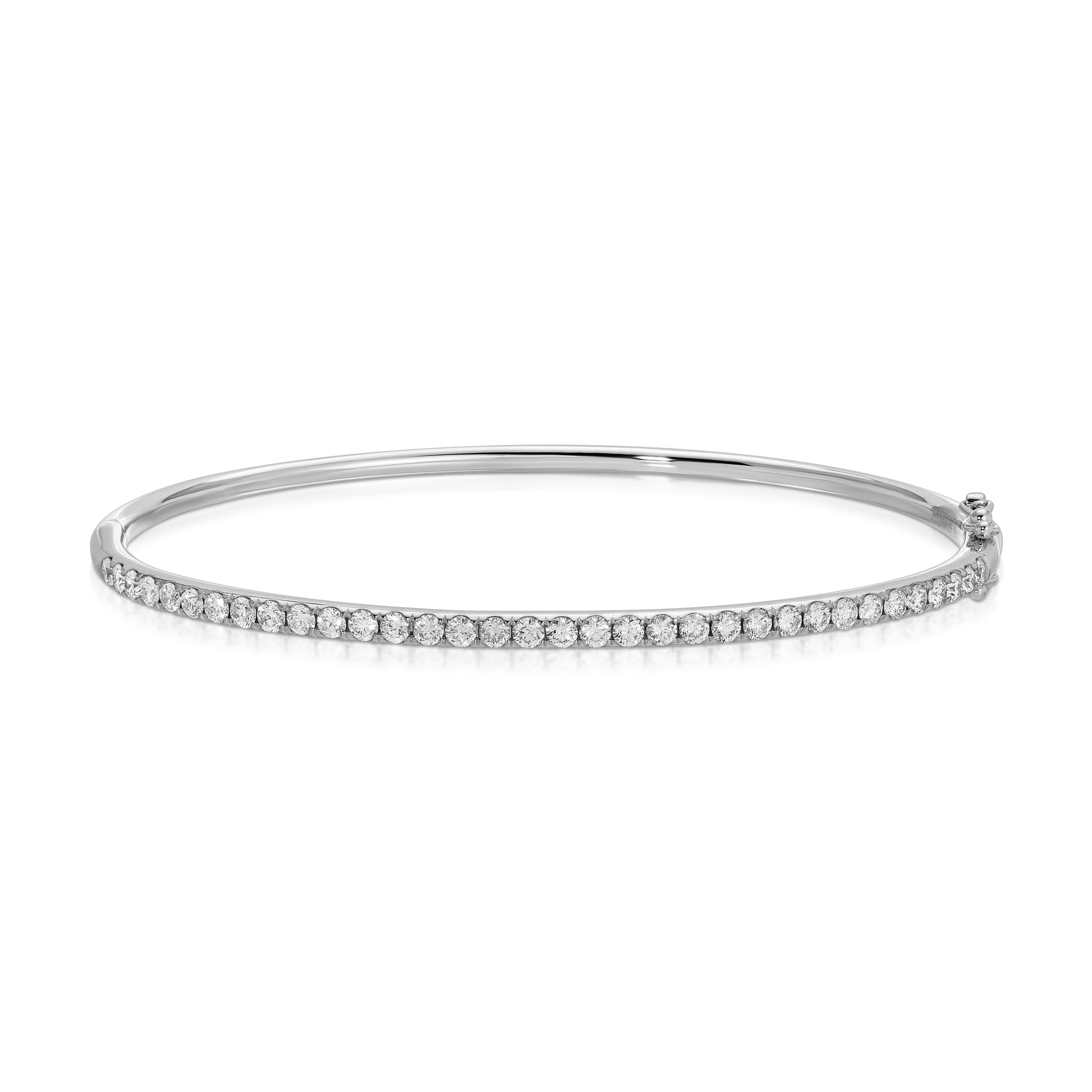 This beautiful 14KT gold bangle is delicately adorned with 1.29ct of sparkling diamonds. Enhance any outfit with its timeless and elegant design. Perfect for any occasion, this bangle is sure to make a statement.