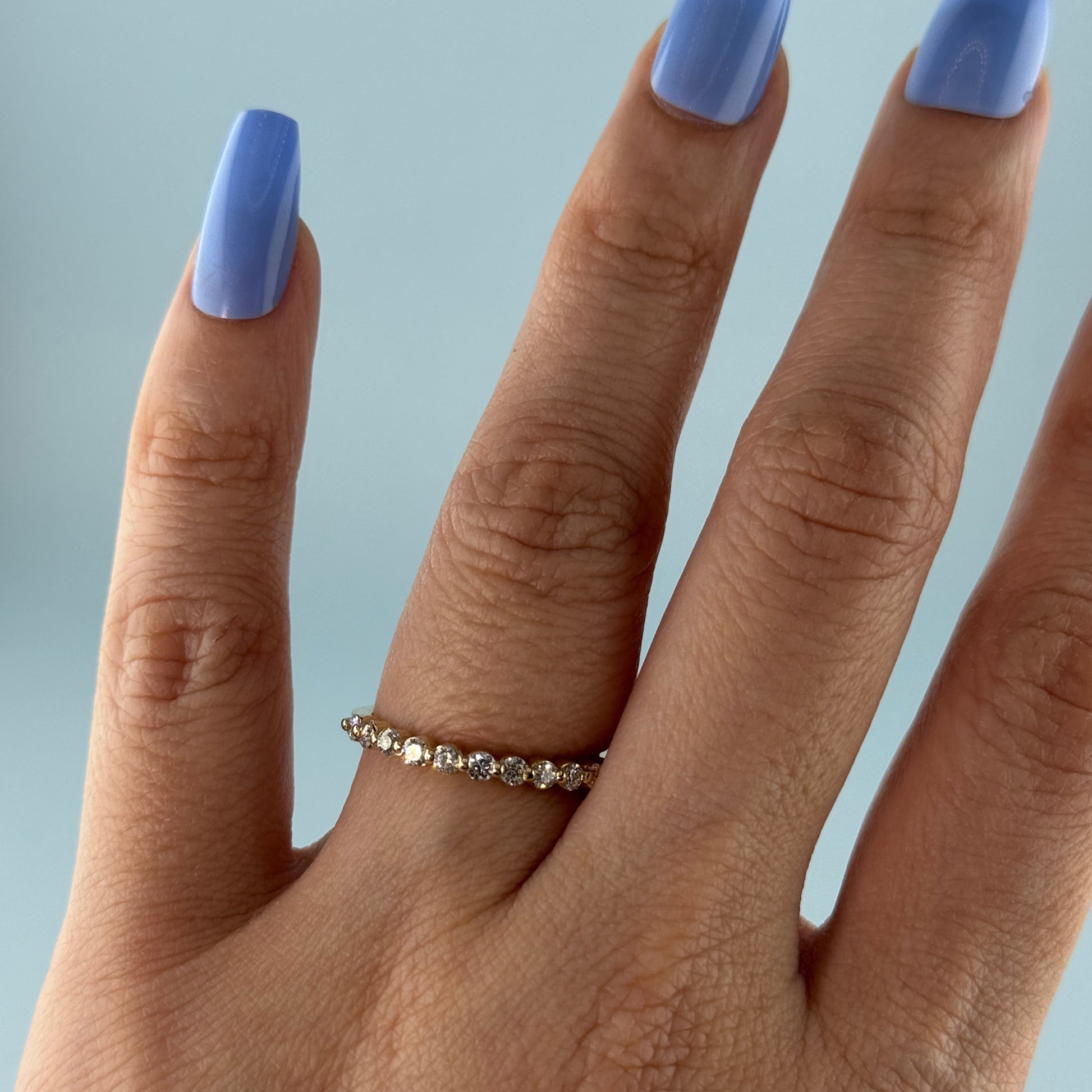 Indulge in the luxury of our 14KT Gold Diamond Band. Handcrafted with 0.37cts of sparkling, E-F color diamonds with VS clarity, this band exudes elegance and sophistication. Add a touch of glamour to any look with this exquisite piece.