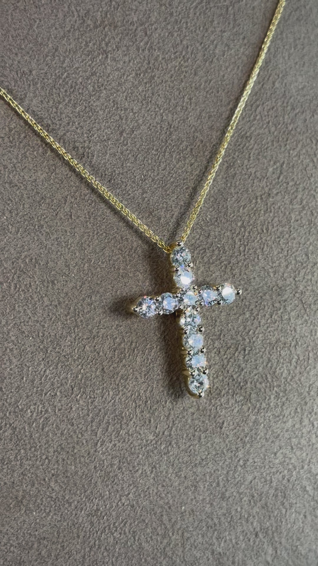 This exquisite necklace features a stunning 14KT gold cross pendant adorned with 2.72cts of flawless E-F VS diamonds. A symbol of faith and beauty, this necklace adds a touch of luxury to any outfit. Handcrafted with the finest materials, it is a must-have for the discerning collector.