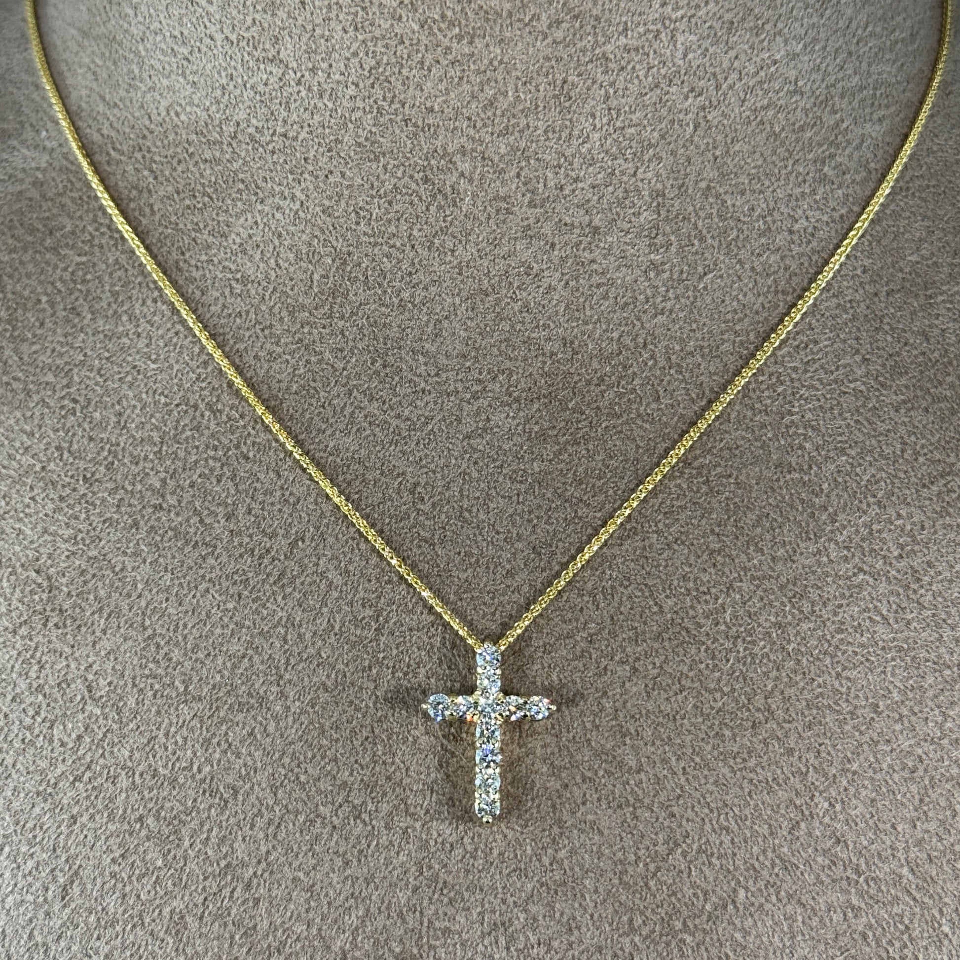 This exquisite necklace features a stunning 14KT gold cross pendant adorned with 0.60ct of flawless E-F VS diamonds. A symbol of faith and beauty, this necklace adds a touch of luxury to any outfit. Handcrafted with the finest materials, it is a must-have for the discerning collector.