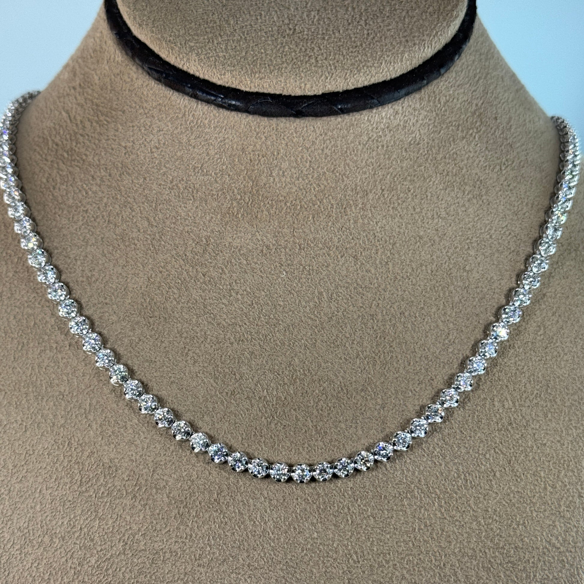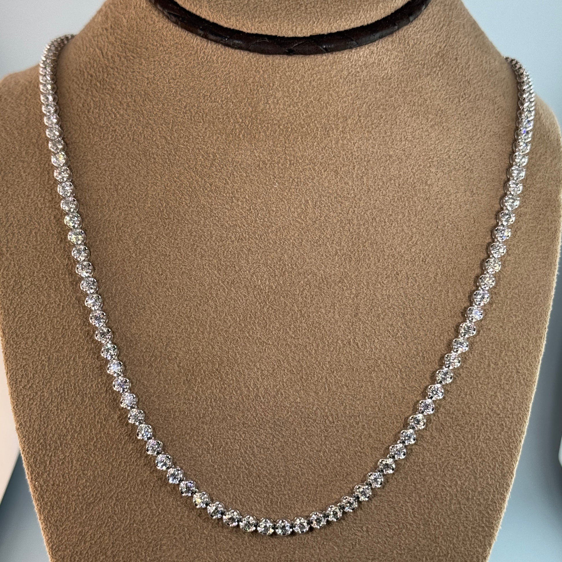 Indulge in luxury with our 14KT Gold Diamond Tennis Necklace. Featuring 9.49cts of E-F color, VS clarity round diamonds, this stunning piece adds a touch of elegance to any outfit. Measuring 20 inches in length, it's perfect for a sophisticated and exclusive look. Treat yourself to the finest quality and craftsmanship with this exquisite necklace.