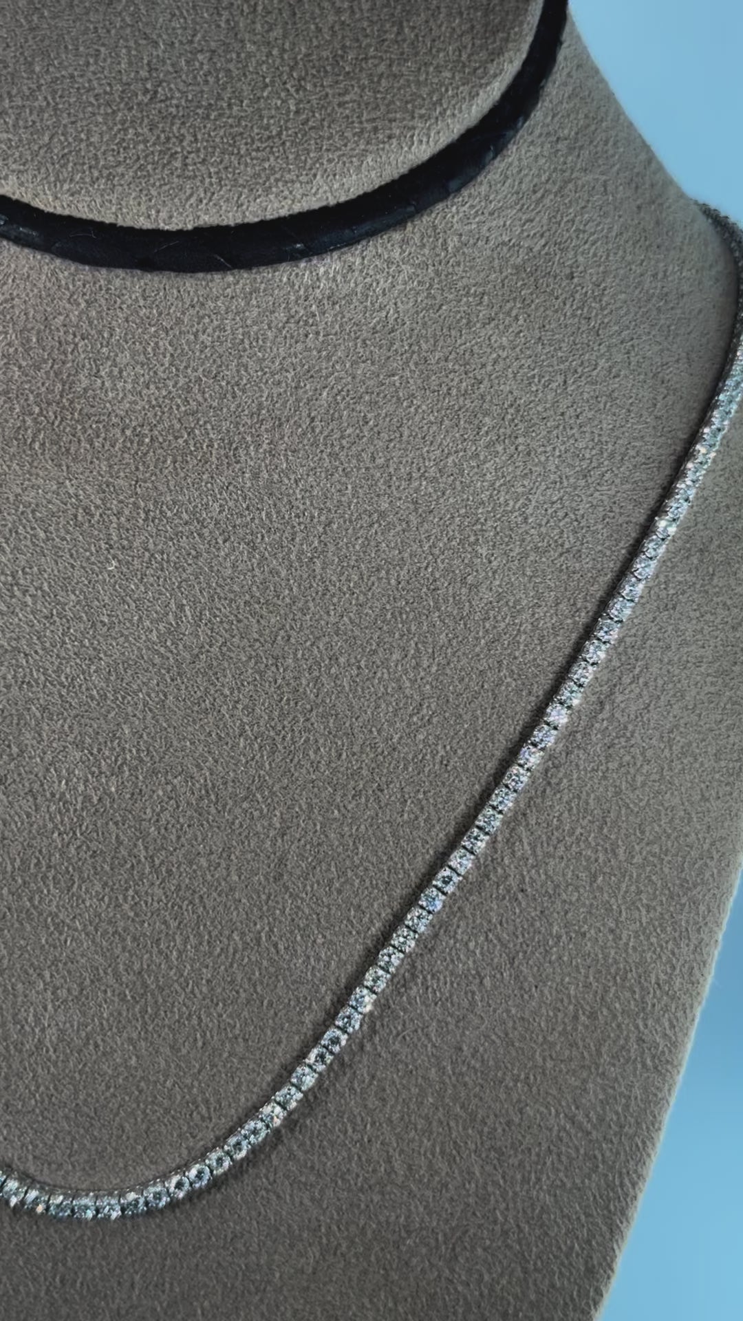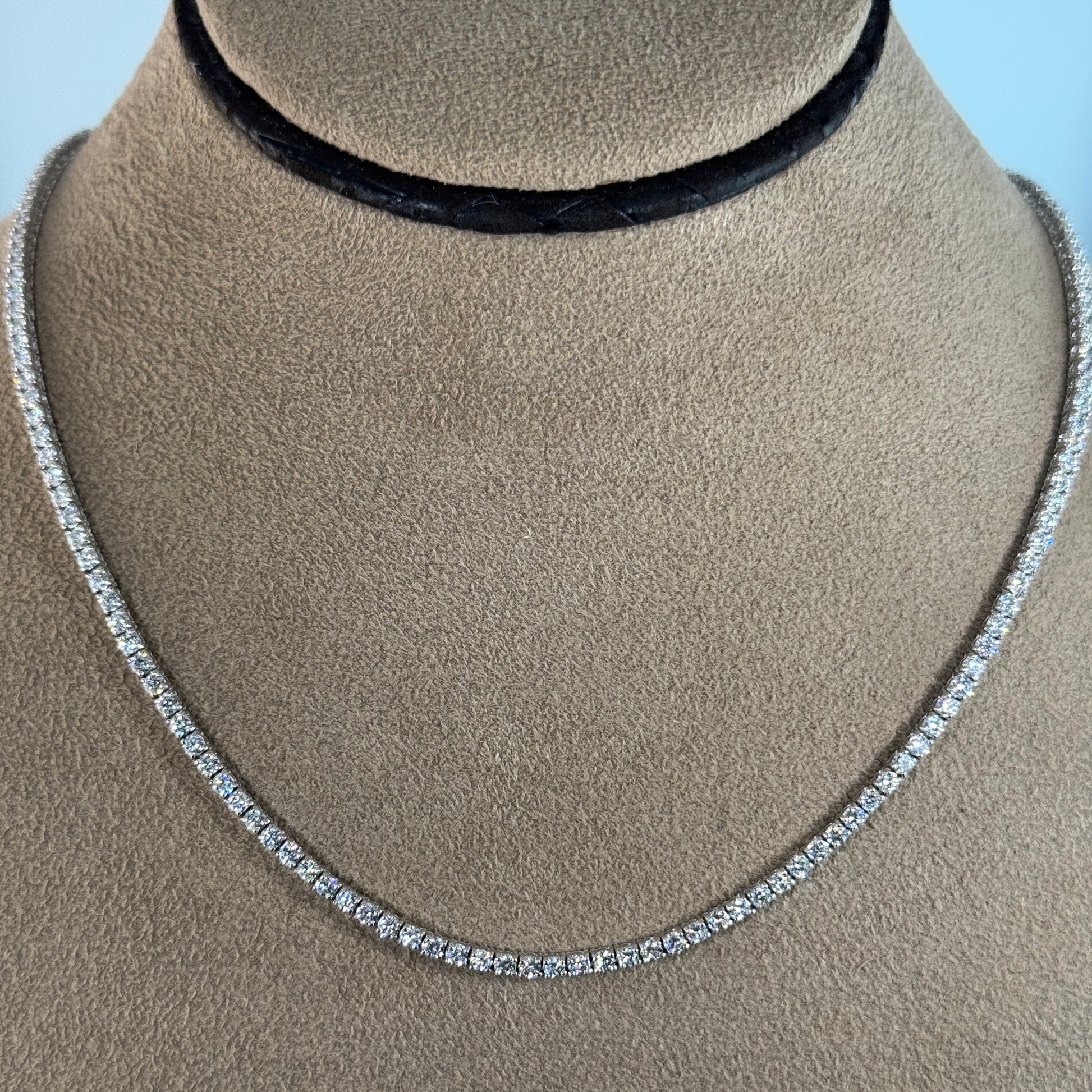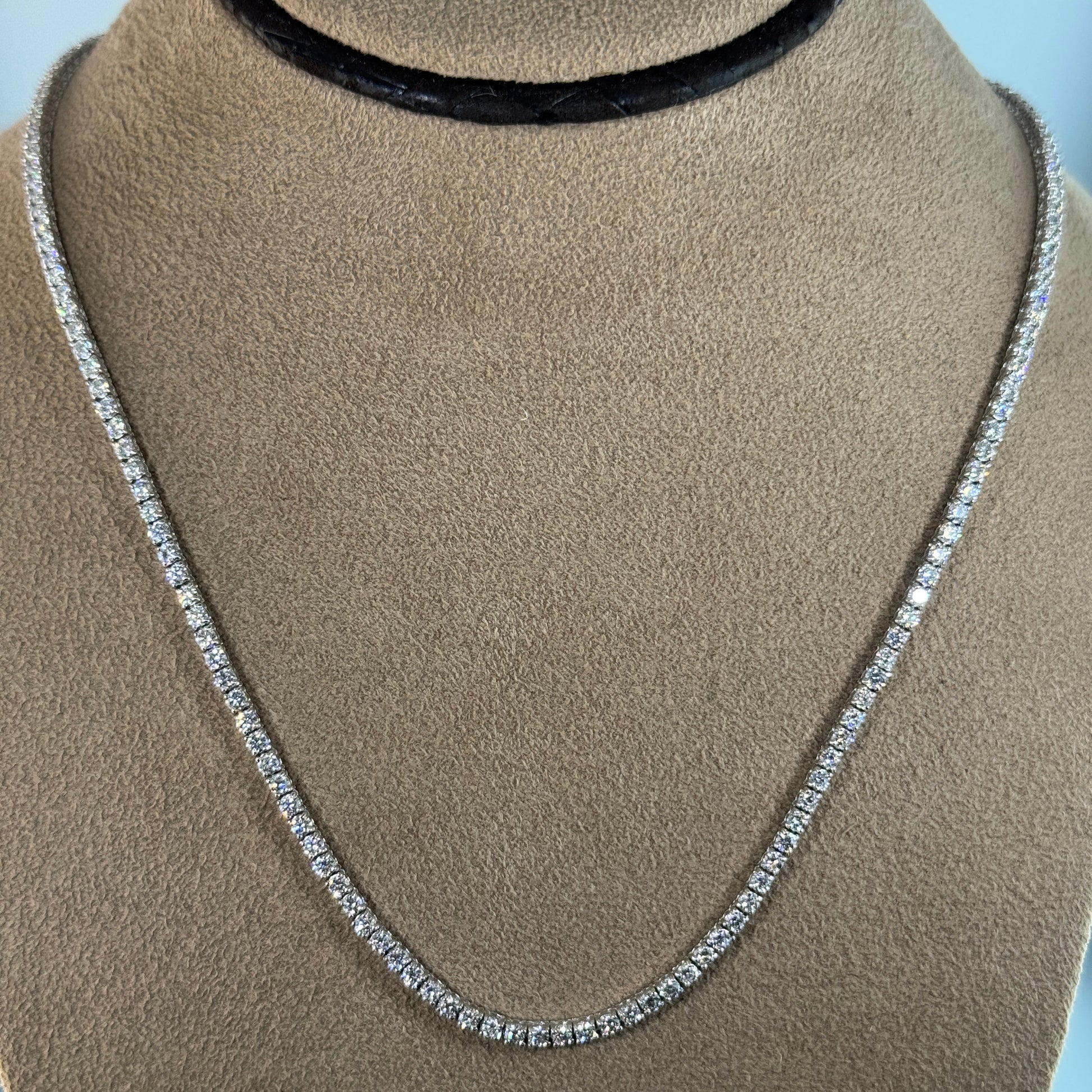 Indulge in luxury with our 14KT Gold Diamond Tennis Necklace. Featuring 6.63cts of E-F color, VS clarity round diamonds, this stunning piece adds a touch of elegance to any outfit. Measuring 17.5 inches in length, it's perfect for a sophisticated and exclusive look. Treat yourself to the finest quality and craftsmanship with this exquisite necklace.