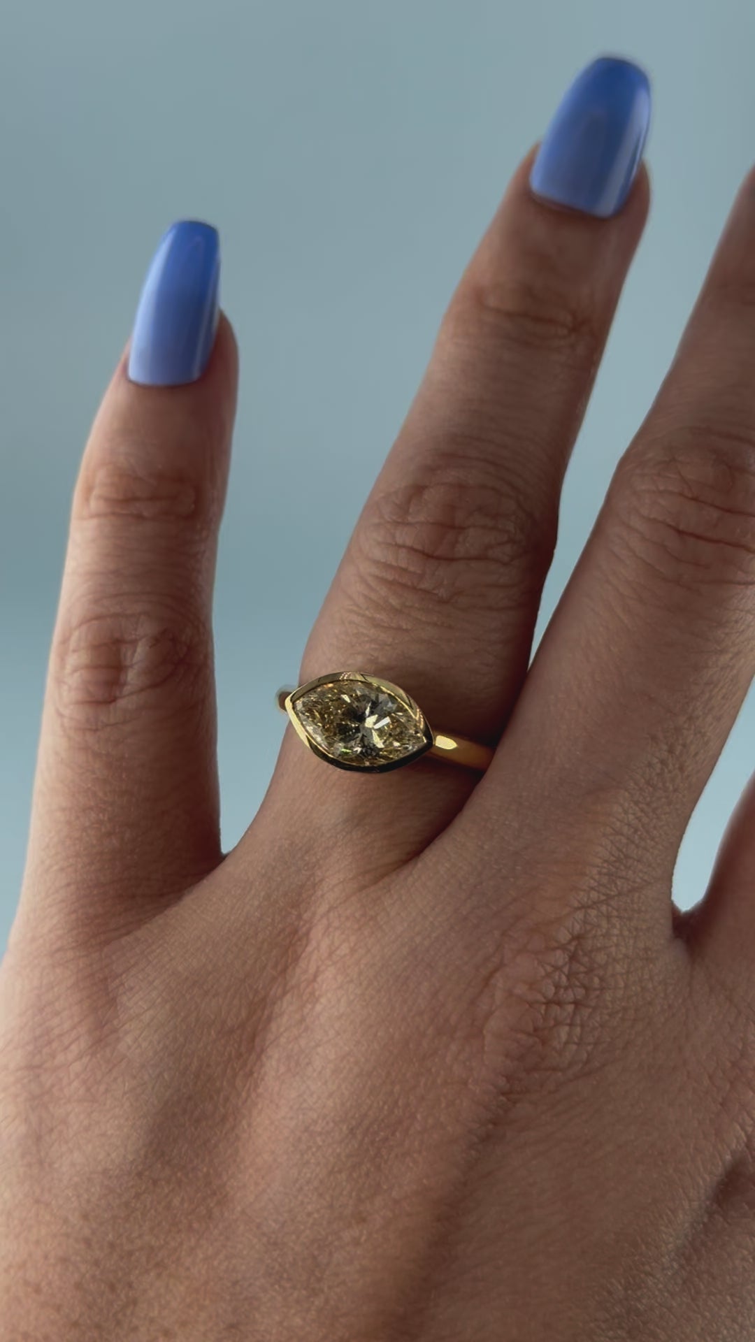 Indulge in pure luxury with our 14KT Gold Yellow Marquise Diamond Ring. Crafted with a stunning 2.30cts marquise yellow diamond, this ring exudes sophistication and elegance. The bezel setting adds a touch of modernity to the classic 14K Yellow Gold band, making it a timeless addition to your jewelry collection.