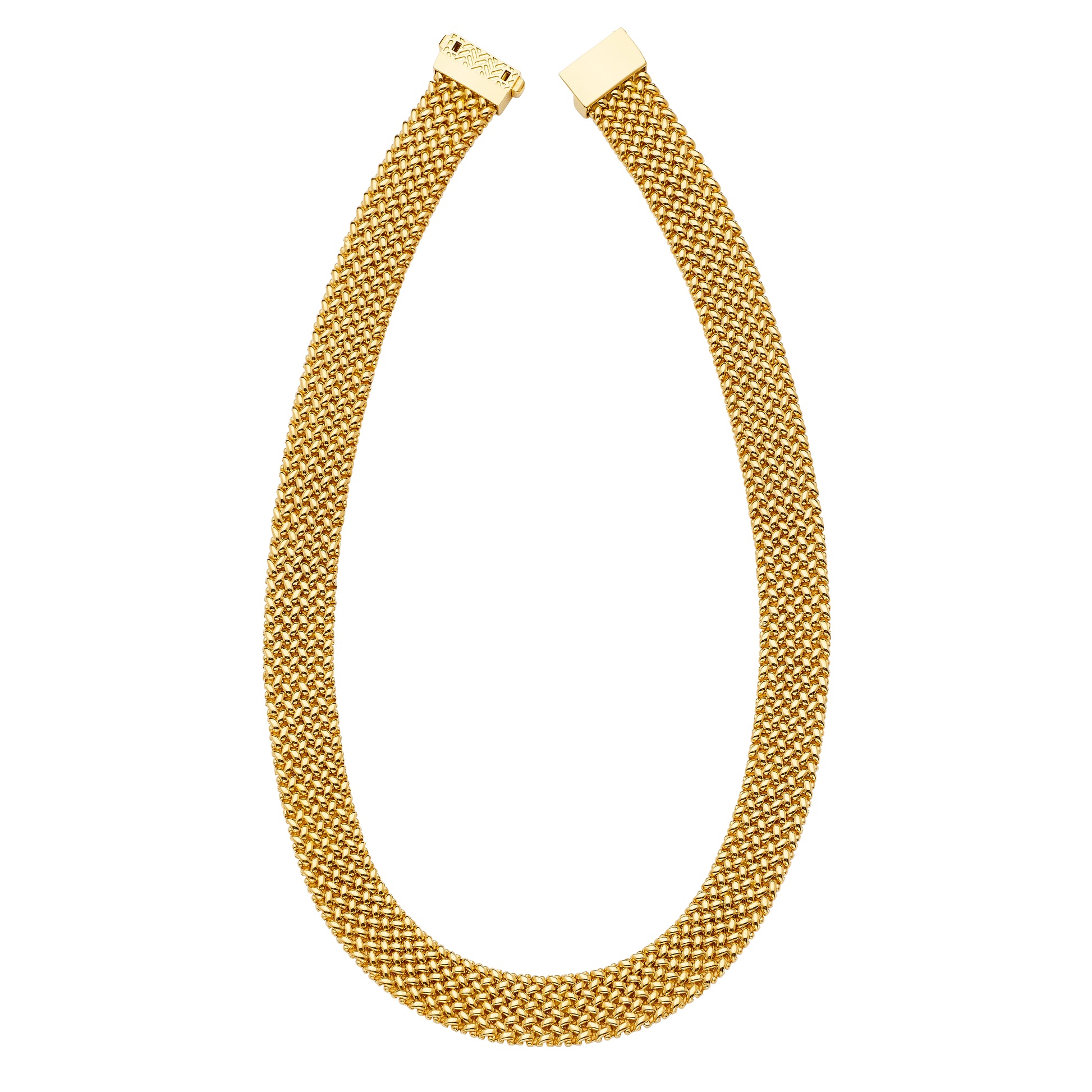 Take on new challenges with our 18KT YELLOW GOLD MESH FLAT chain. With a bold 15.0mm width and 18 inch length, this piece adds a touch of daring to any outfit. The unique MESH FLAT design sets you apart from the crowd. Ready to make a statement? This chain is for you!