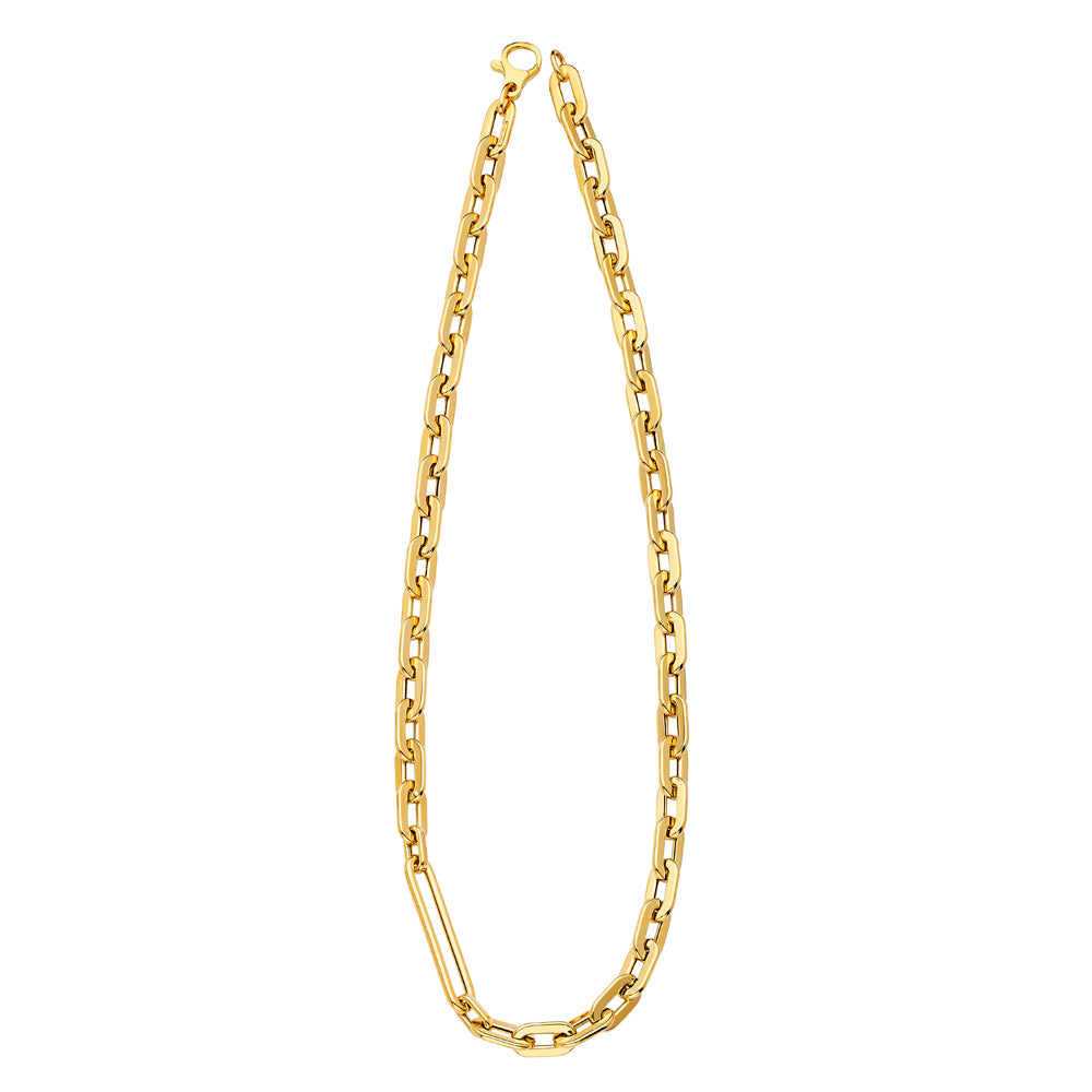14KT YELLOW GOLD PAPERCLIP NECKLACE 7.4MM WITH LONG CENTER LINK