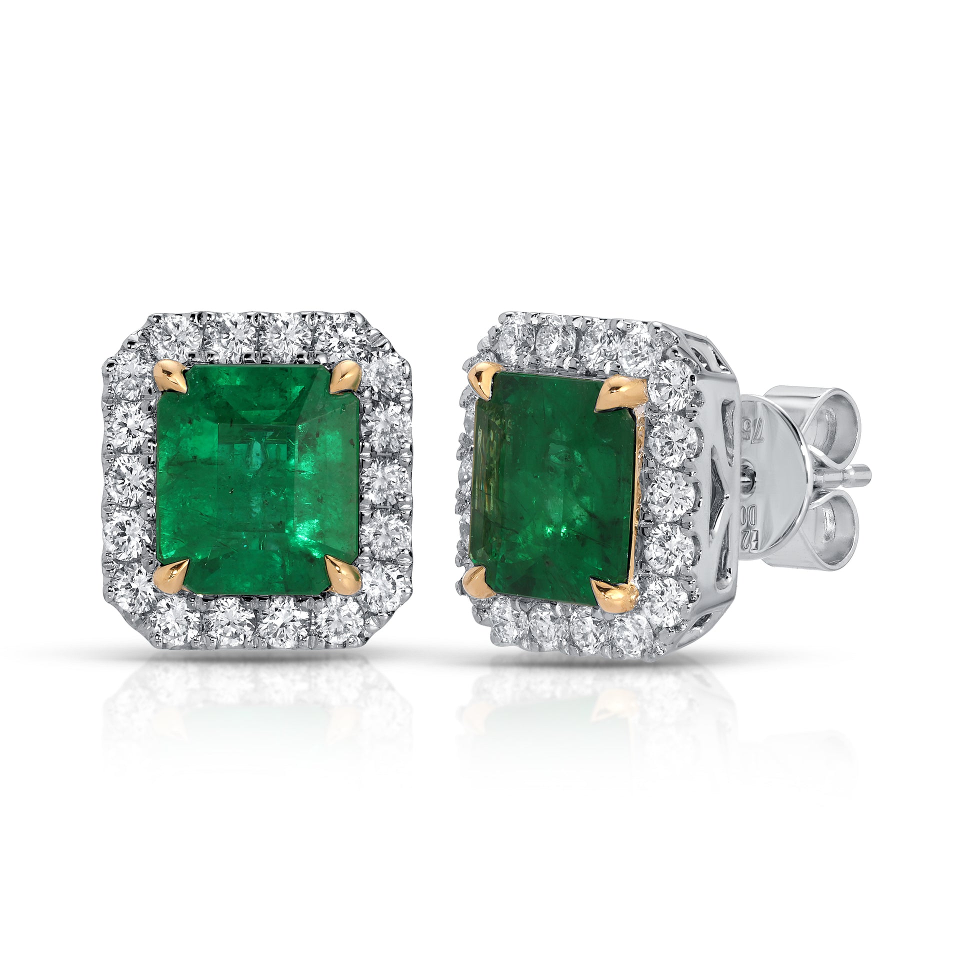 18KT White Yellow Gold Emerald Earrings 2.38ct and 0.68ct Diamond Earrings