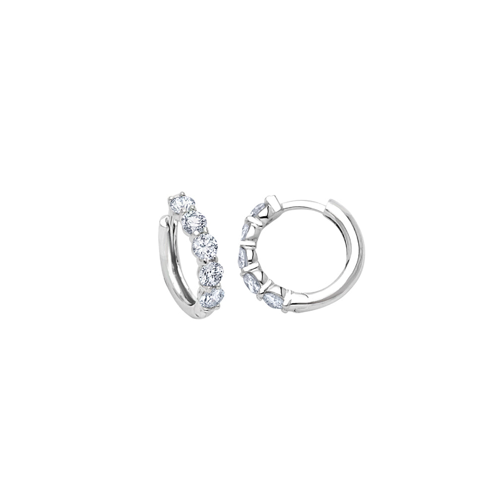 Indulge in luxury with our 18KT white or yellow gold diamond hoop earrings. Adorned with 10 dazzling diamonds totaling 1.33 carats, these earrings exude elegance and sophistication. The G VS1-VS2 diamond quality shines bright, while the 3.30mm width and .60 inch height add a touch of glamour. Elevate your style with these exquisite diamond earrings. Also available in 18KT Yellow Gold.