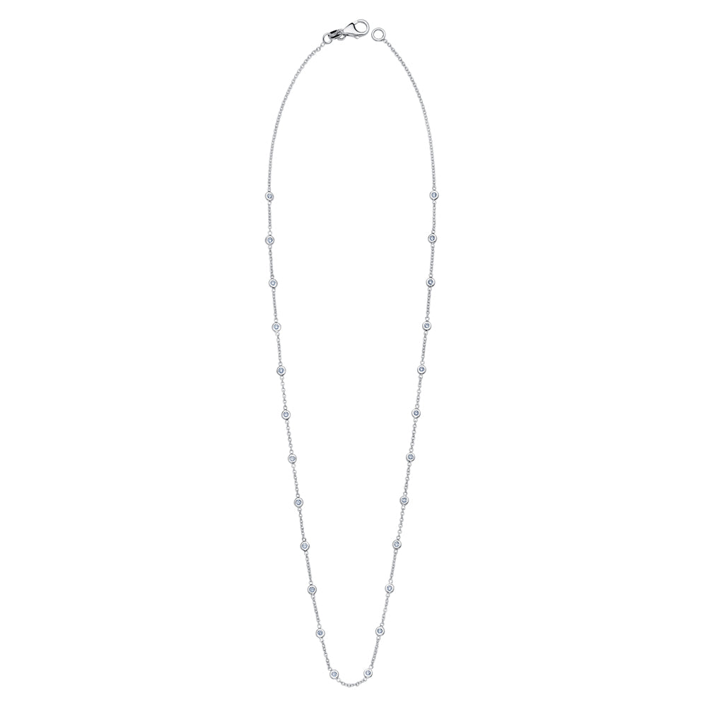 18KT DIAMOND-BY-THE-YARD 1 POINTER 28 BEZELS WHITE 1.3MM CABLE CHAIN WHITE BEZELS 0.28CTTW DIAMONDS