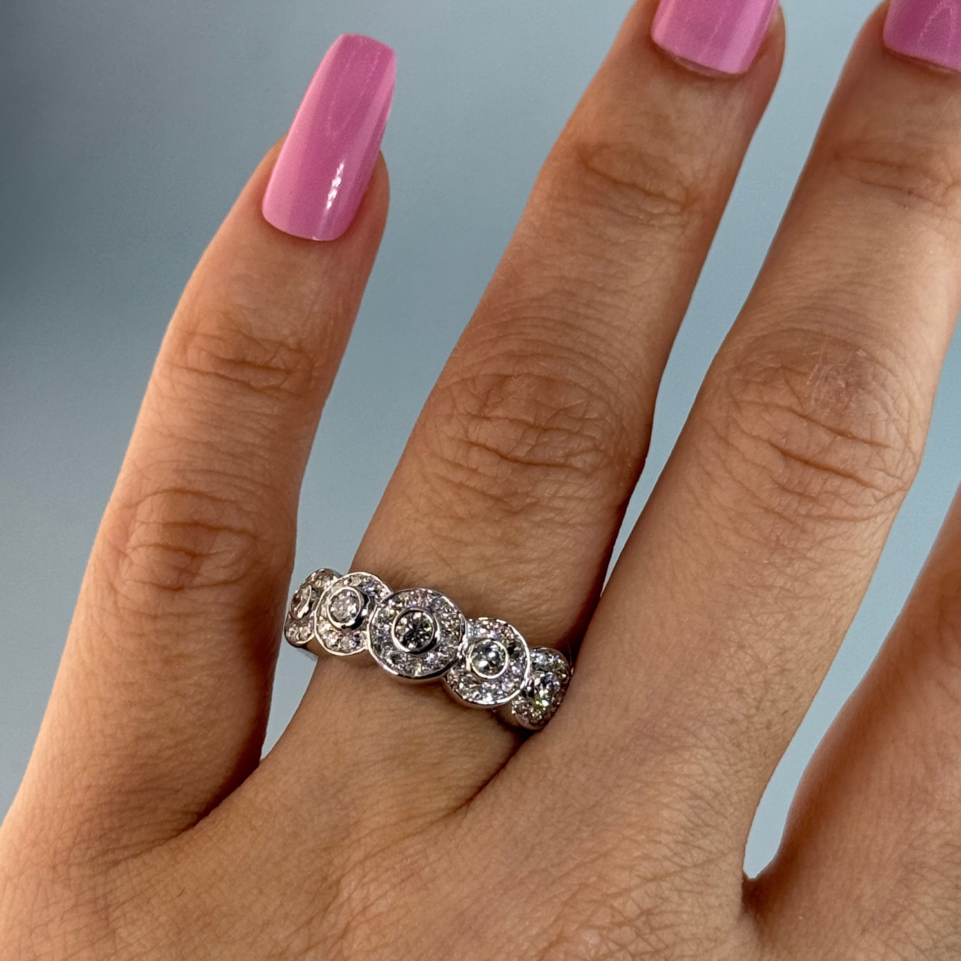 This luxurious 18KT Gold Diamond Band is set with 0.63 carats of E-F color, VS clarity round diamonds, adding a touch of sophistication to any outfit. The intricate details of the diamonds are sure to catch the eye and elevate your style to new heights. A true statement piece for the fashion-forward individual.