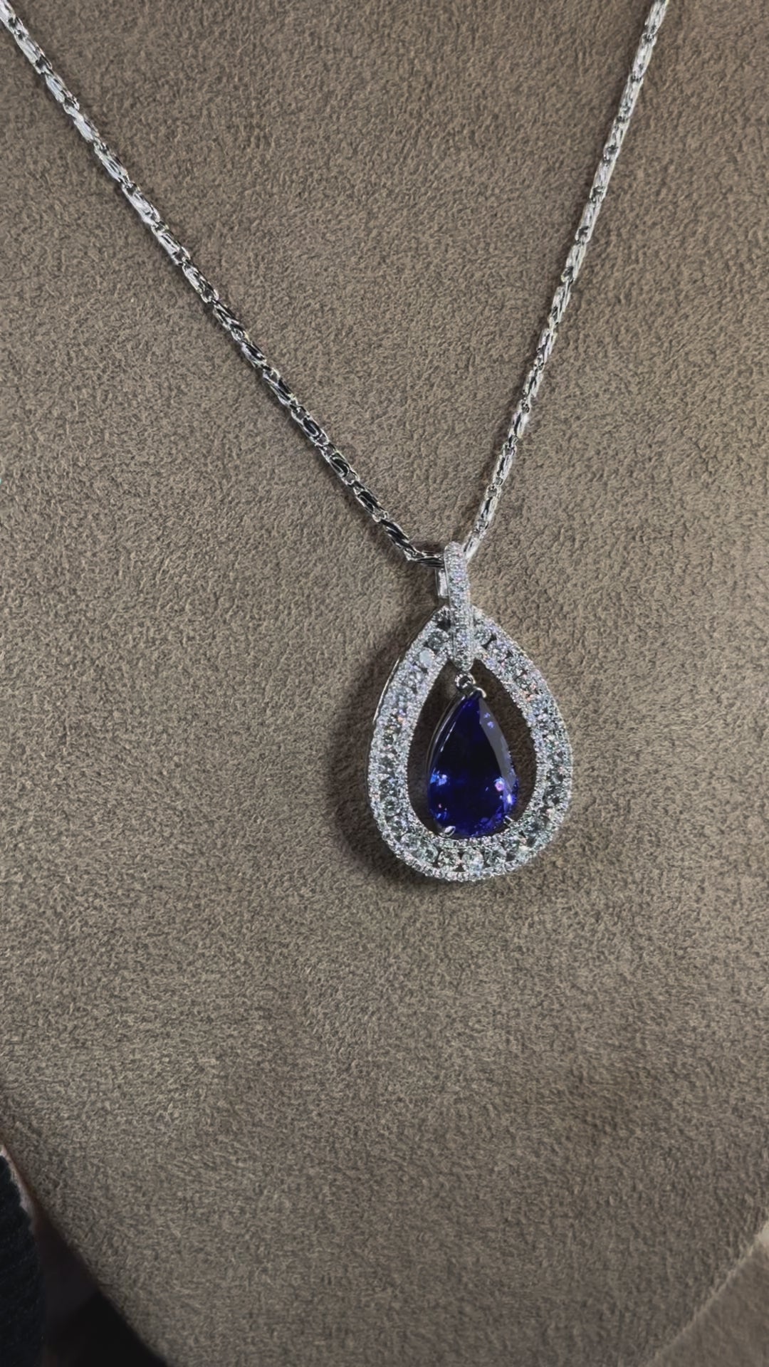 18KT Gold Pear Tanzanite and Diamond Pendant Necklace