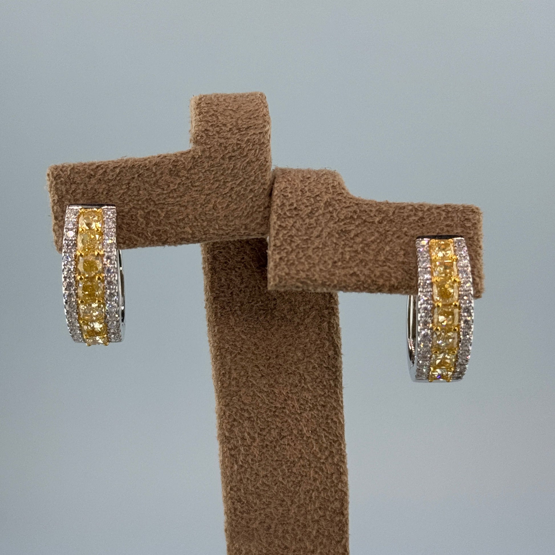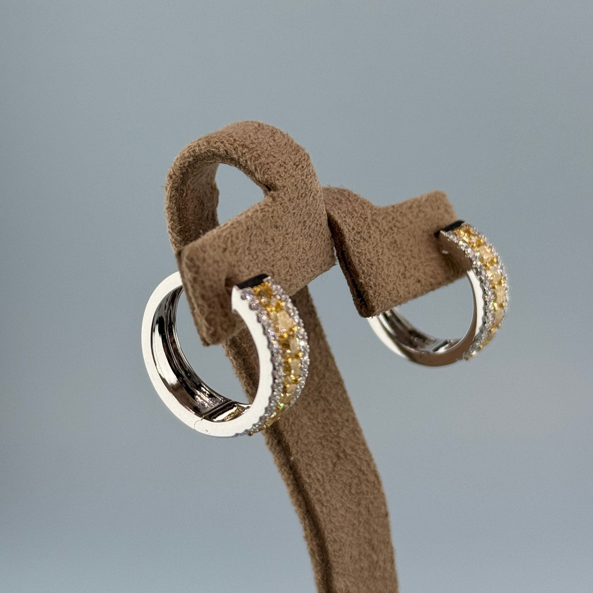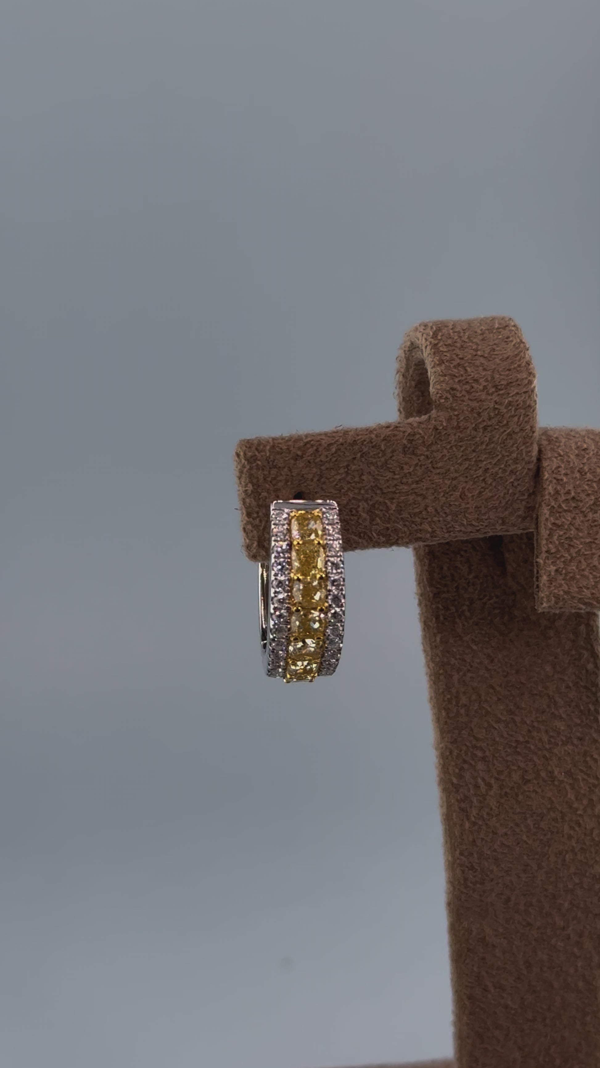 Indulge in pure luxury with our 18KT Gold Yellow and White Diamond Hoop Earrings. Crafted with 1.82cts of Yellow Diamonds and 0.50ct of White Diamonds, these earrings are the epitome of elegance and sophistication. Elevate any outfit with these stunning, exclusive earrings.