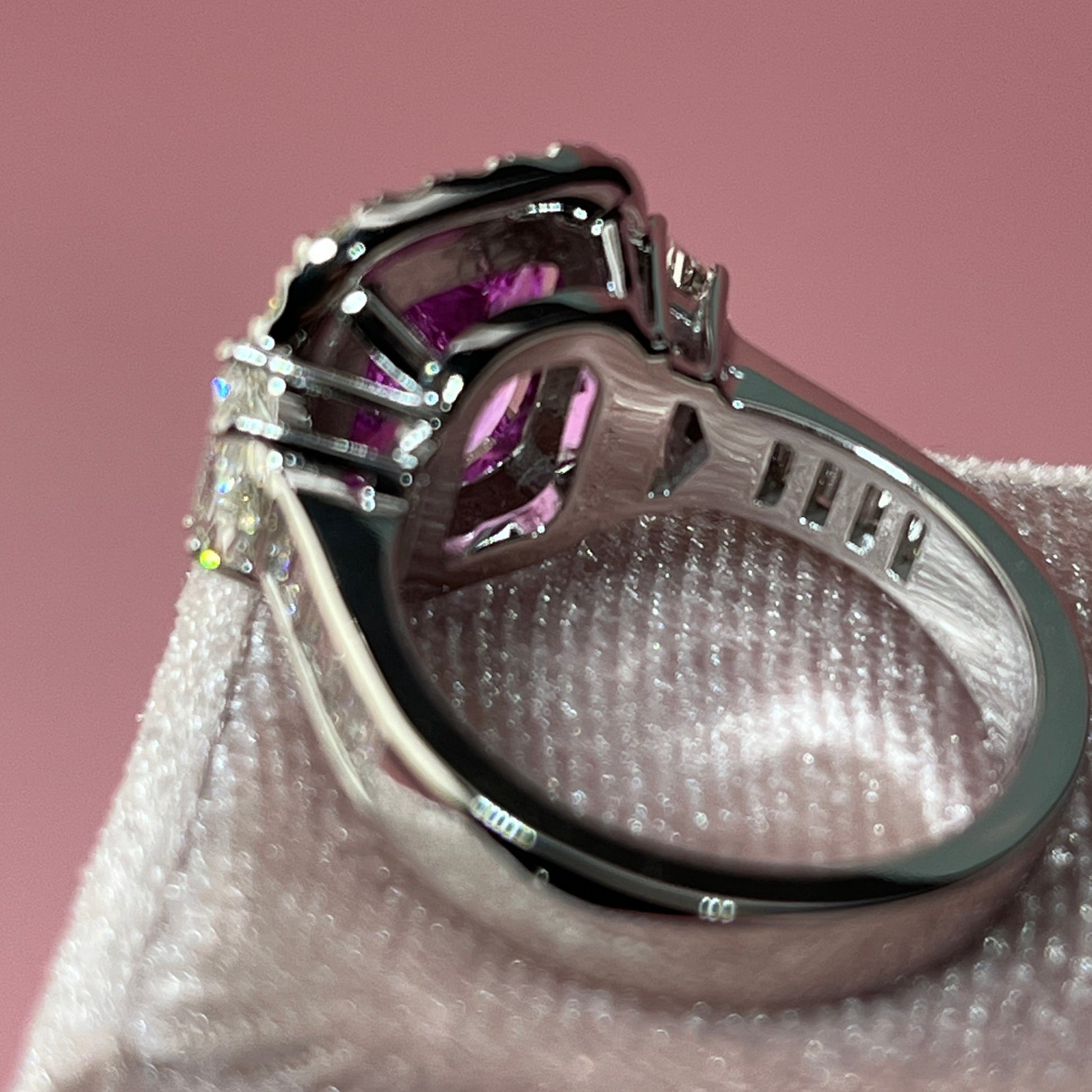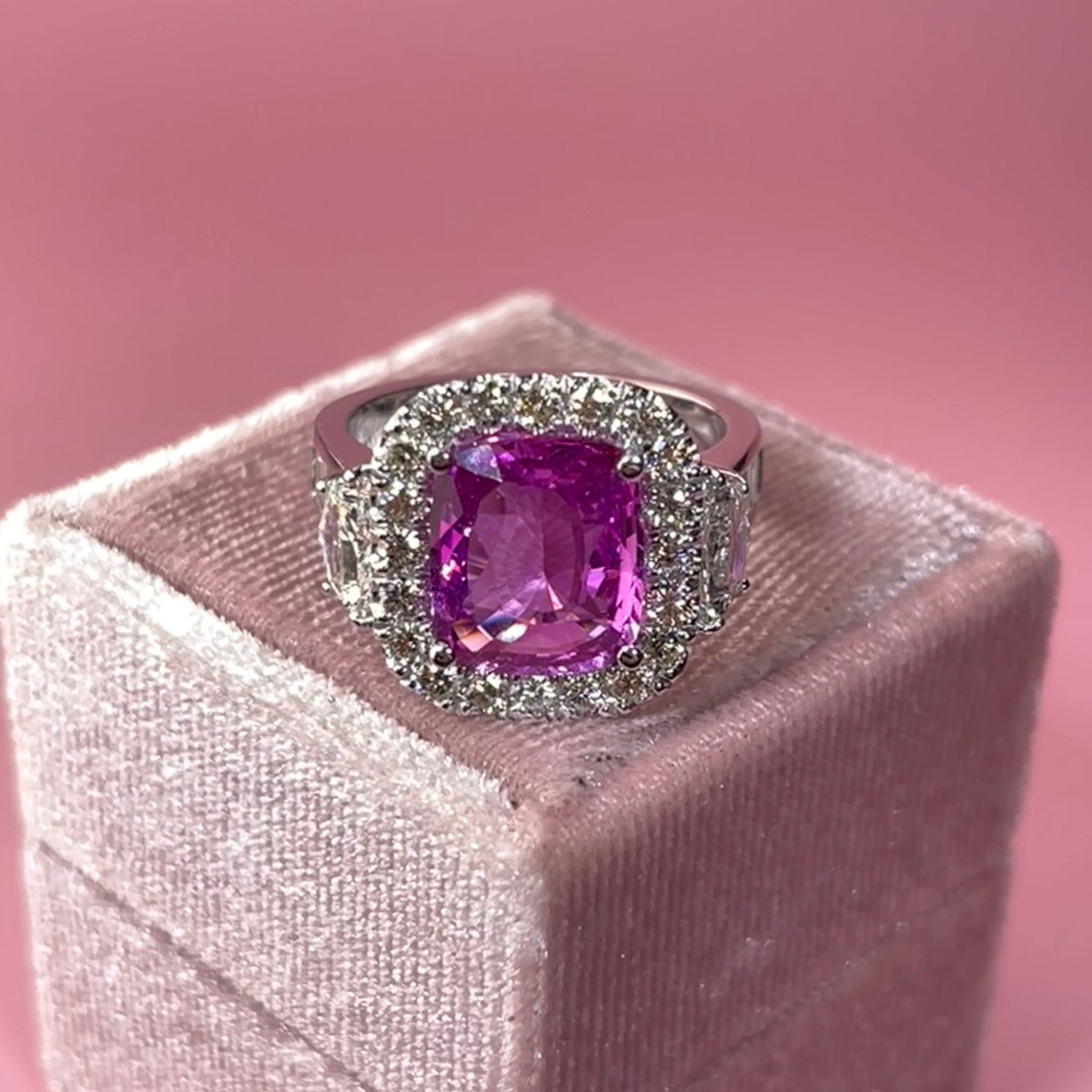Cushion Cut Pink Sapphire Ring Set with Diamonds
