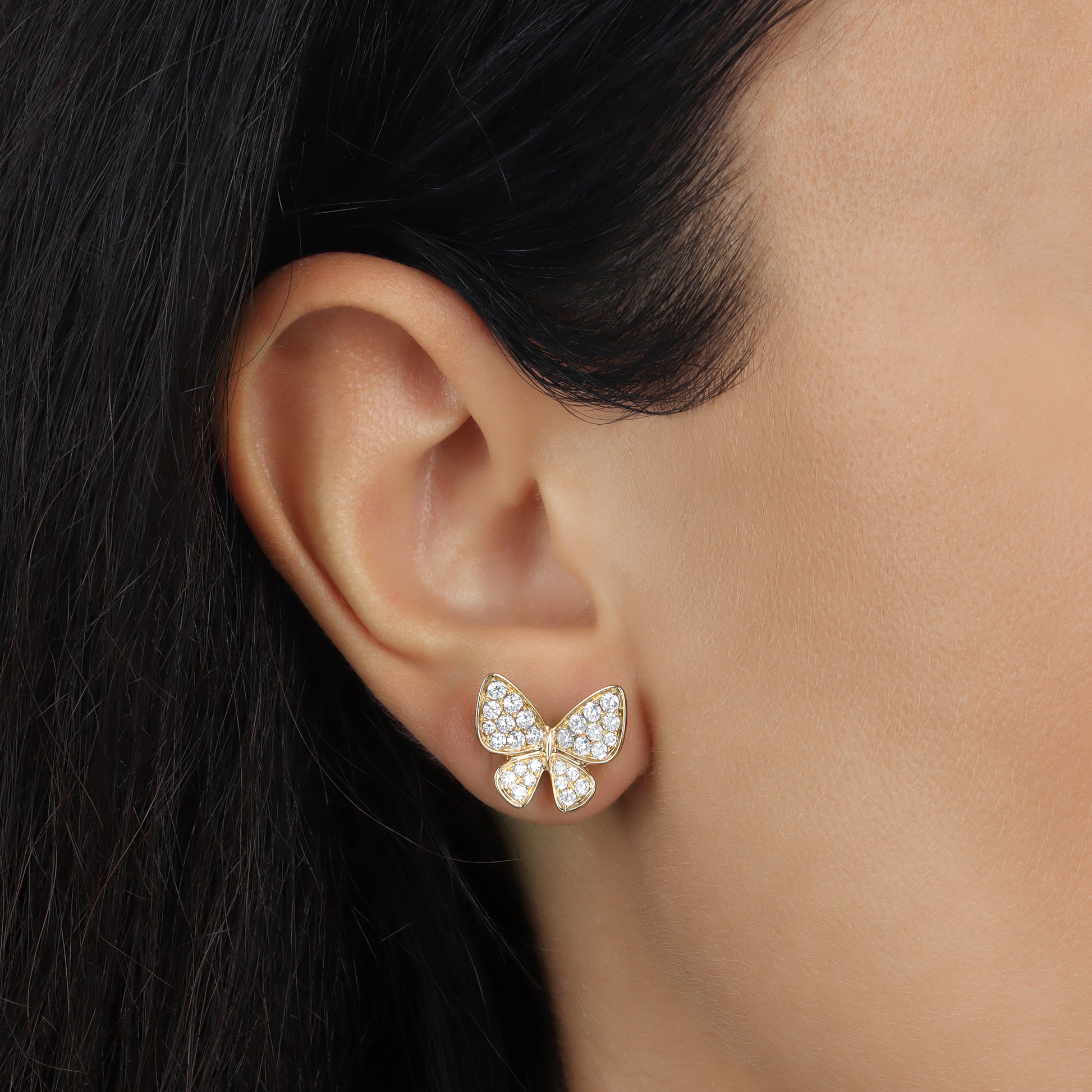 Indulge in luxury with our Diamond Butterfly Earring. Crafted from 18KT gold and adorned with 56 diamonds, this large 1.26CT earring will add a touch of elegance and sophistication to any outfit. Embrace your inner diva and shine like a diamond with this exquisite piece of jewelry.