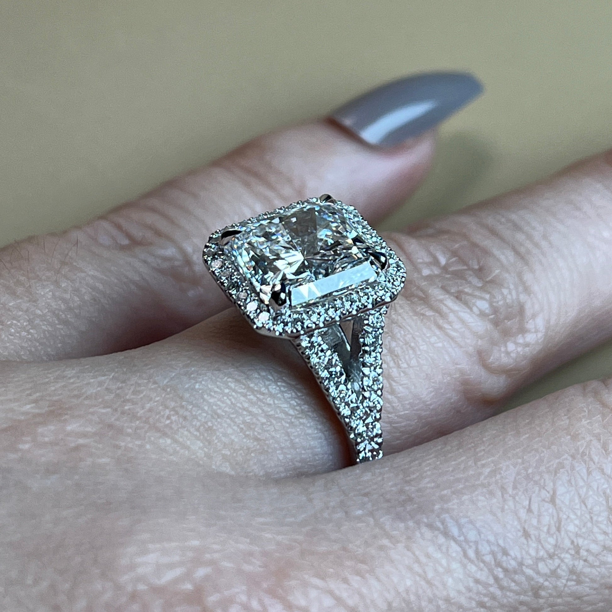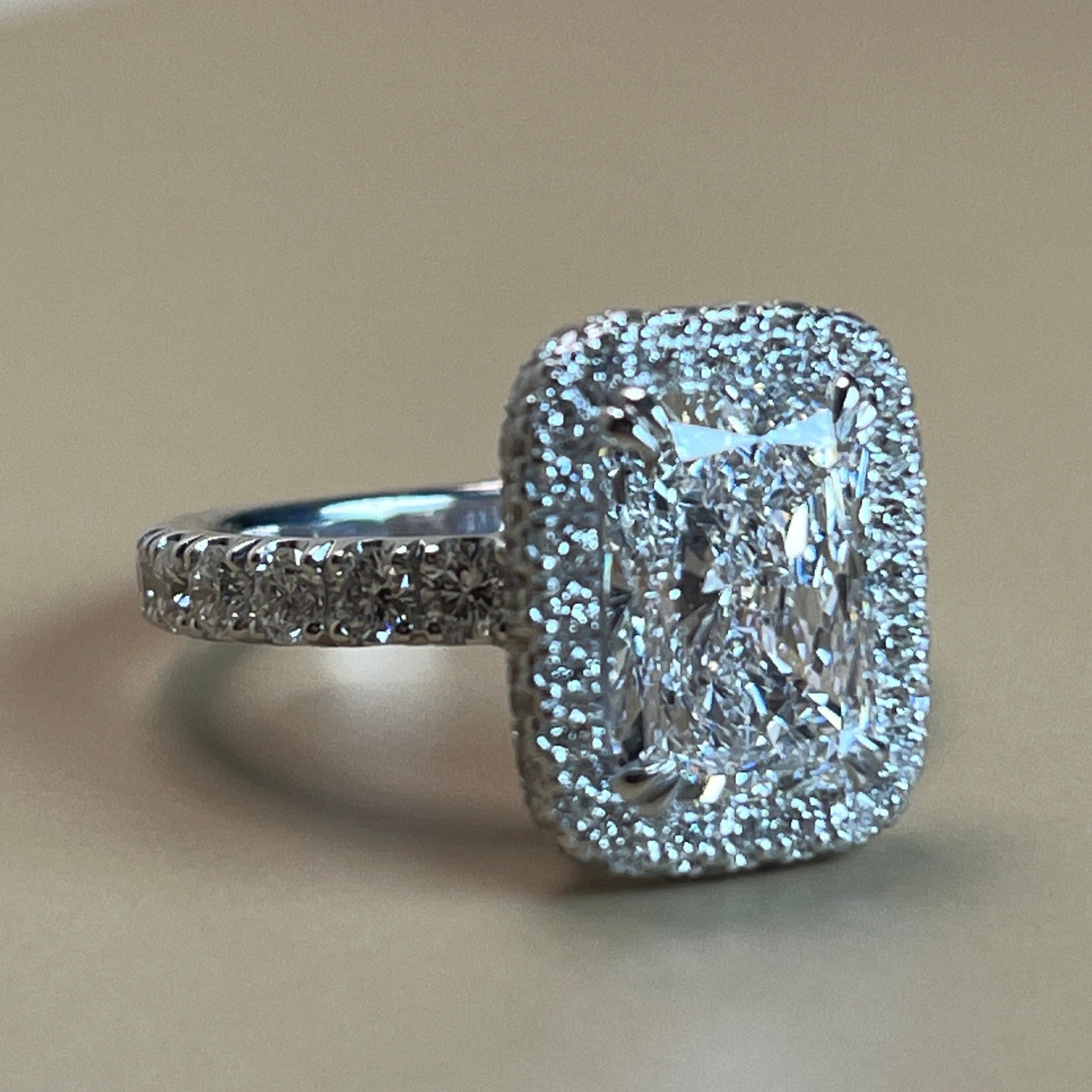 Elongated Cushion Halo Lab Diamond Engagement RIng