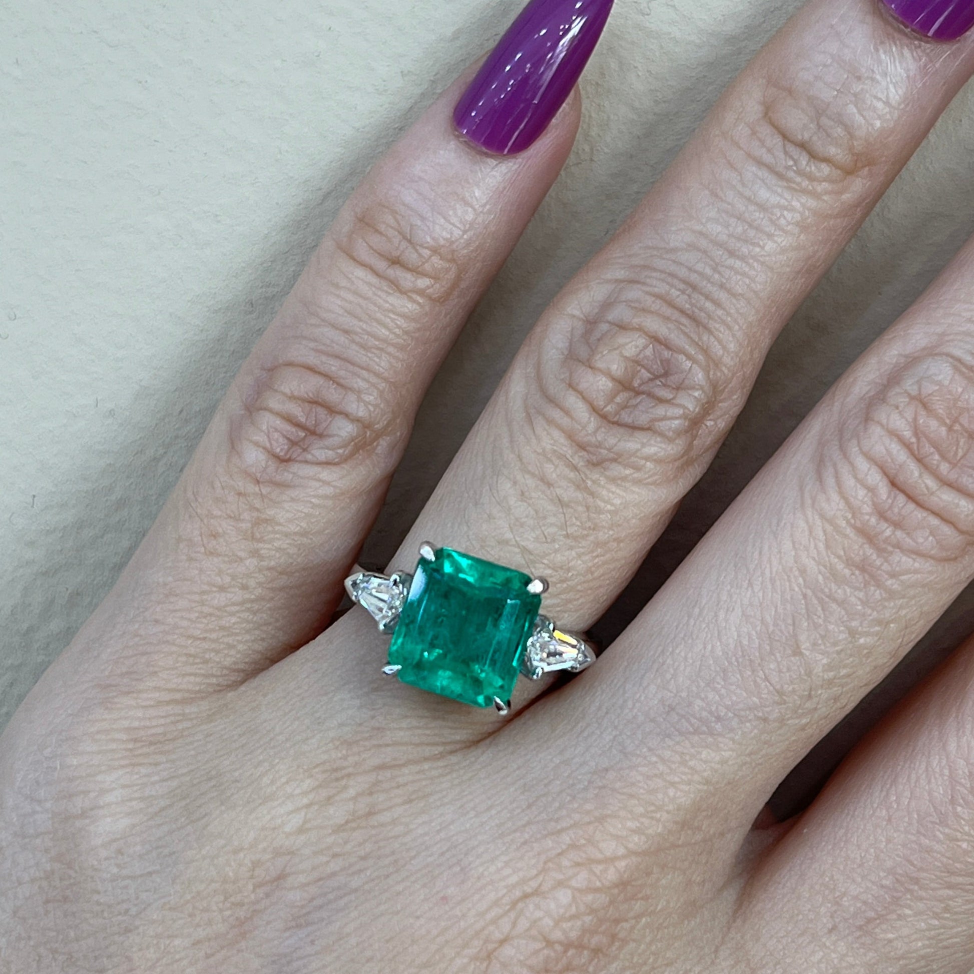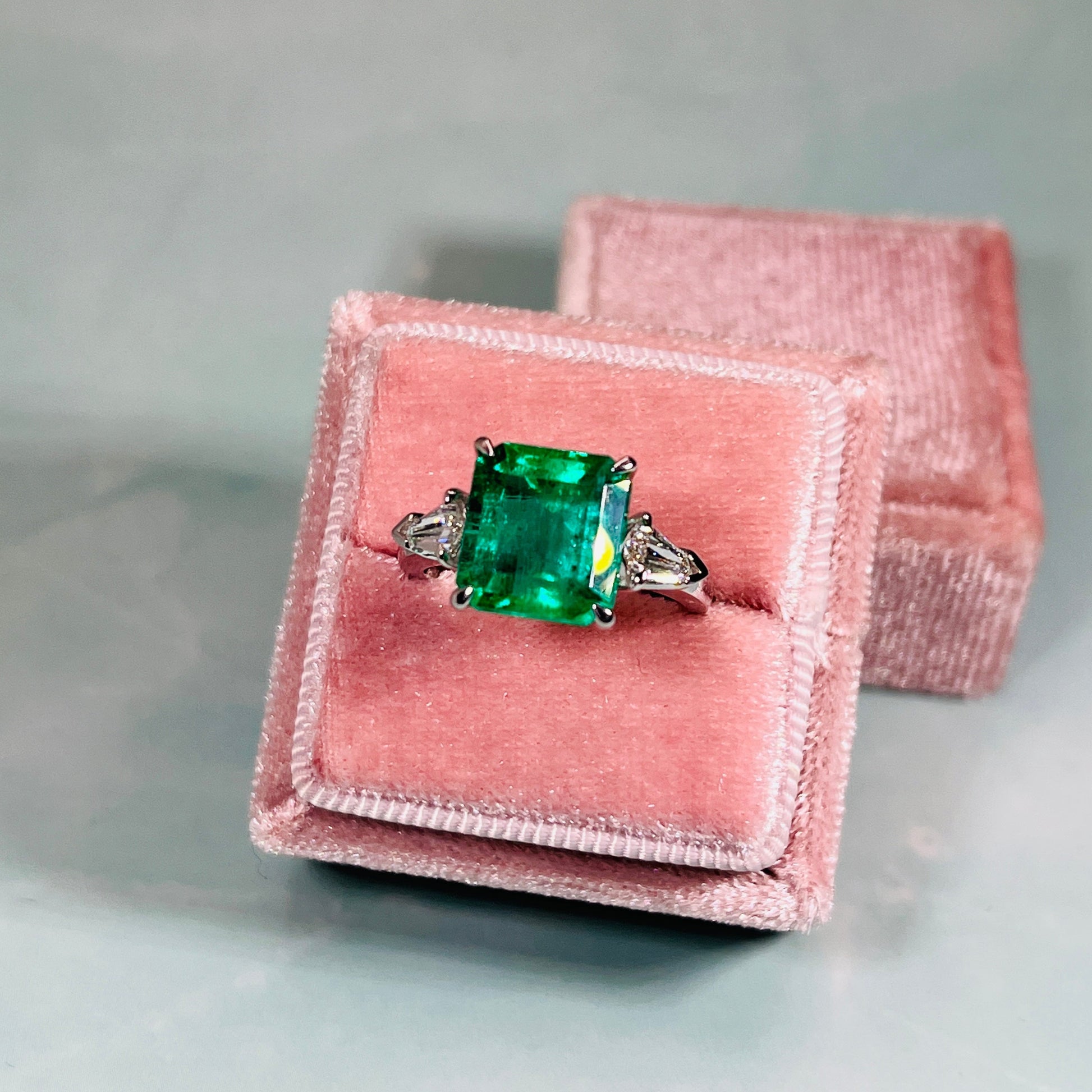 Three Stone Emerald Cut Emerald Center Stone Diamond SIde Stone Ring